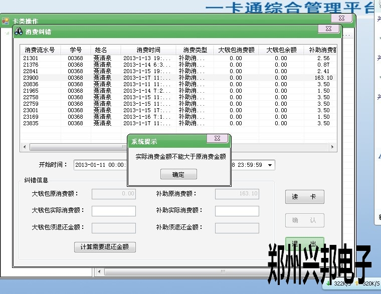 在做消費糾錯的時候提示“實際消費金額不能大于原消費金額”