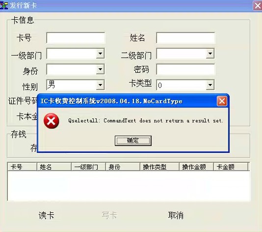 485水控機在充值的時候提示錯誤 “Qselectall:CommandText does not return a result set.”