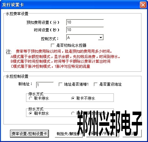 是否初始化水控器,該復選框中對管理卡來說的。如果在設置管理卡的時候選中該復選框,使用管理卡設置預扣費率的同時也初始化了水控機上的所有消費數據。