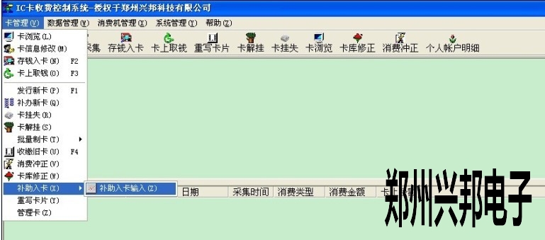 1. 485售飯機軟件打開后,點一下卡管理--補助入卡--補助入卡輸入,添加上人員及補助信息后,關閉此畫面,如下圖所示。