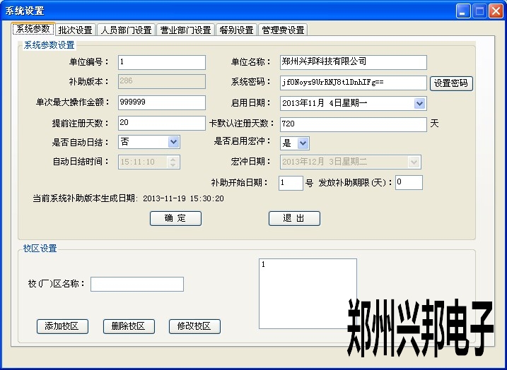Ø 校(廠)區(qū)設(shè)置:添加校區(qū),刪除校區(qū),修改校區(qū)