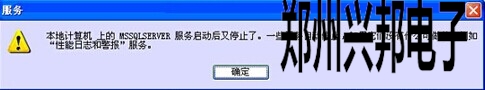 3.出現(xiàn)“本地計算機(jī)上的MSSQLSERVER服務(wù)啟動后又停止了。