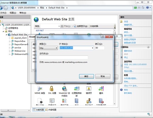 3、選擇網站--DefaultWebSite,選擇編輯網站下面的綁定