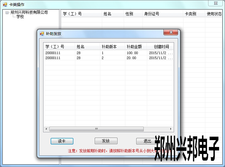 打開互聯(lián)網(wǎng)一卡通平臺,進(jìn)入制卡中心 -- 卡管理。然后鼠標(biāo)右鍵,選擇 發(fā)放前期補助。