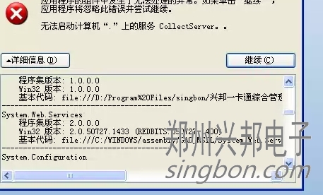 互聯(lián)網(wǎng)一卡通食堂售飯機(jī)的軟件,在操作啟動(dòng)采集時(shí)提示無法啟動(dòng)計(jì)算機(jī)上的CollectServer