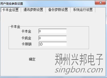 1、打開軟件,系統(tǒng)管理--用戶參數(shù)設(shè)置--用戶高級(jí)參數(shù)設(shè)置。卡本金設(shè)置里面的卡限額,添加上要限的金額,確定。