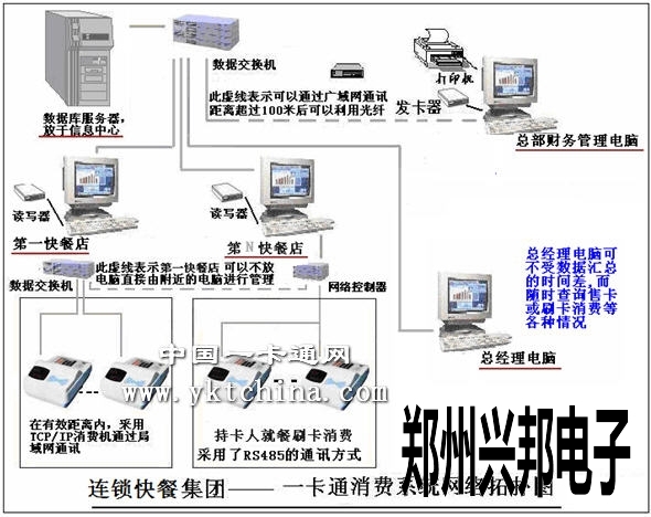 興邦連鎖快餐店儲值消費一卡通系統要求實現:所有持卡人員,只要手持一張智能卡,就可以完成本企業現有分布在全國的全部連鎖店內的刷卡消費。